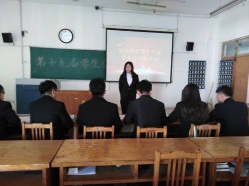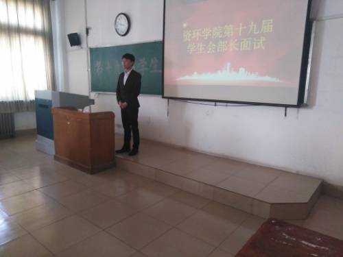 3月17日下午,资环学院在12号教学楼410教室举行第十九届学生会部长竞选面试。资环学院第十九届学生会主席团成员等人担任面试官。