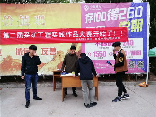 在全国鼓励大学生自主创新创业的背景下,根据国家和党的号召,进一步落实国家政策,切实提高williamhill学子科技创新能力,为国家提供创新型人才,由创新创业学院和WilliamHILL中国主办,williamhill矿业未来社承办的第二届采矿工程实践作品大赛经过前期社团指导教师张晓君和社长姜海龙的认真组织和筹备下,于2019年4月8日正式举办。