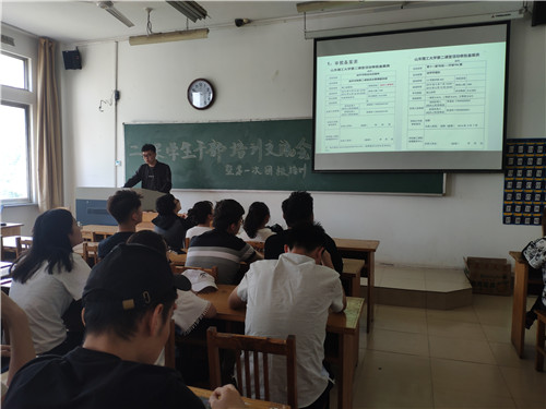 为促进学生会成员与班团干部进一步熟悉到梦空间app,了解相关活动的正确申报流程,5月12日上午,我院在12号教学楼412室举办二课学生干部培训交流会。此次会议由第二课堂综合管理部部长王胜迁主讲,学生会干部和18级部分班委到场聆听学习。