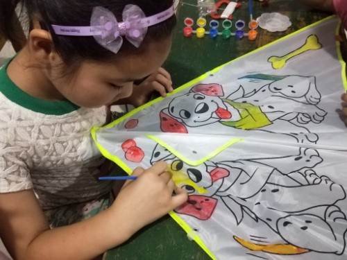 志愿者们指导孩子们制作风筝、绘画风筝,紧接着同学们纷纷挥舞着手中的画笔,发挥着自己的想象,绘制老鹰、蝴蝶、金鱼、小燕子等绚丽的风筝图案。孩子们和志愿者们共同用多彩颜料为风筝涂上绚丽的颜色,描绘着他们心中一个个色彩纷呈、充满梦想的风筝。尽管骄阳似火,但仍抵挡不住孩子们参与活动的热情,一张张认真执笔创作的小脸无一不显示着孩子们对此次活动的喜欢和对绘画的热爱。现场井然有序,孩子们在风筝上书写着心中的梦想。风筝制作完成后,同学们排队来到广场上放飞风筝,小伙伴们两人一组,互相帮助、互相配合,一个拿着线轴拉线、一个手持风筝等待放飞。志愿者们一声令下,拿风筝的小朋友松开手,拉线的小朋友飞奔起来。孩子们顺利地放飞手中的风筝,让梦想在蓝天翱翔。看着漫天飞舞的风筝,大家手舞足蹈、喜悦之情溢于言表,广场上充满了欢声笑语。