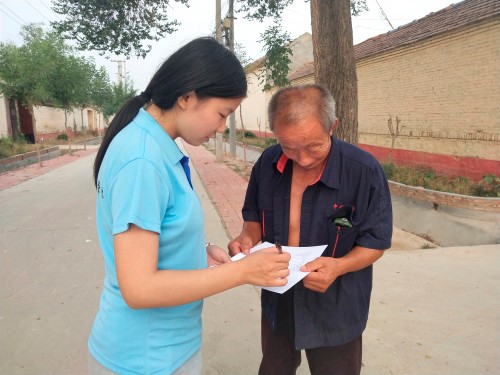 上午,实践团在村委会集合完毕,分成两组走访入户。实践团进入村民家中,以调查问卷的形式就对生态文明的了解程度、对农药使用的看法以及对旱改厕(农村普遍的厕所)改造的看法等,对不同群体不同阶层的人进行调研。调研过程中,村民们积极配合,认真填写调查问卷,有部分村民主动与实践团交流,了解实践目的。天气炎热,村民热心地为团队成员提供茶水与水果,为成员递上纸巾、毛巾,成员们被村民们的热情深深感动。