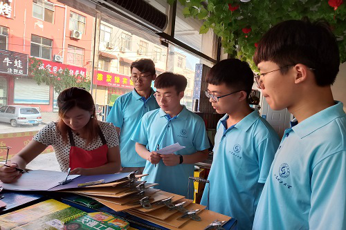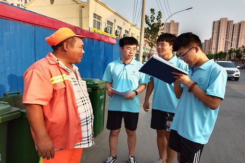 济阳实践第一站围绕住所展开问卷调研。实践团队成员分为两小队,先以住所为中心,对周边环境进行熟悉,随后在济阳区汽车总站周边商户、街道环卫工人进行问卷调研。实践过程中,多数受访者表示,“居民环保意识不强,垃圾分类意识亟待提高”是居民存在的主要问题。同时,他们给出不少建设性的意见,如从儿童的角度出发,小手拉大手,影响大人进行垃圾分类处理;增强相关教育宣传工作,加强相关政策扶持与督促。
