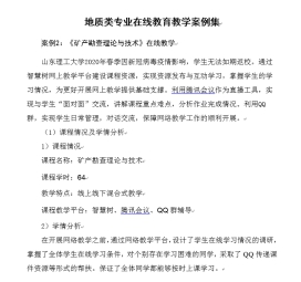 伴随相关课程教学活动的开展,积累了越来越多的线上教学经验。2020年3月份,这些经验被总结成相关教学案例,被编录到教育部高校地质类专业在线教育教学案例集里。