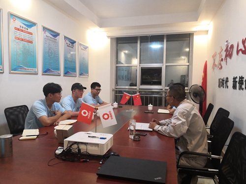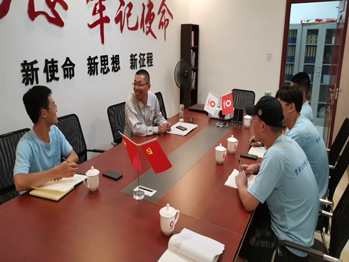 7月18日,项目经理、济宁泰安党支部书记刘锋在兖州中材宁阳分公司党员活动室为采二分队上了一堂以疫情大背景下党的实际行动为主题的党课。在党课结束后,实践队员们与刘锋进行了交流访谈活动。