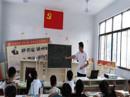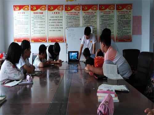7月19日,蒲公英支教团全体成员在黄店镇西台集村大队部开展第三天的暑期支教活动。
