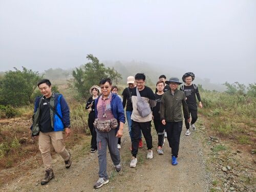 早上7点,刘正宏及项目组带领实践团成员来到辽宁省沈阳市法库县雾气朦胧的桃山山顶,对山顶的糜棱面理进行观察和测定,期间刘正宏老师向实践团讲解了包括地层演化及相应构造变形的一系列知识。团队成员认真学习,主动进行实际测量和测绘操作,在刘正宏和项目组负责人时溢的帮助下,团队成员完成多个地点的产状测量、剖面图绘制及全岩采样。