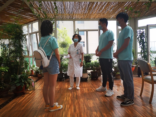王女士带领实践团成员参观了依托医养结合体系建立的老年公寓、医养诊所、老年病医院、康复中心、精神科等科室部门。这些结构均位于此次实践调研地点颐佳大厦内,大厦还配备有空中花园、康复中心、隔离中心、老年病医院和门诊等诸多保障部门。同时医院接入了医保。在老年公寓房间多为1至3人的居住套件和家庭间,企业在疫情期间配备的自感喷雾消毒系统始终遵循每日消毒两次,在大厦的电梯间、卫生间也放置了消毒液、抑菌液,时时刻刻确保老人身体健康,降低病毒传播的可能性。
