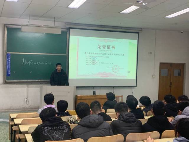 除了参加大创项目之外,肖登建积极参加各类科技竞赛,在大二就开始参加了中国“互联网+”大学生创新创业大赛,在参赛过程中与系里指导老师和几位志同道合的同学们一起对项目进行优化和完善,将一个又一个的“点子“展现在“互联网+”科创大赛的大舞台上,拿下了一项校金、多项校银奖的成绩。即使下半学期受疫情影响,他仍然迈步在自己逐梦道路上,对“互联网+”获金奖项目提出新思路,在导师指导下带队参加了第十届全国高等学校采矿工程专业学生实践作品大赛并获国家级二等奖(第34届全国高校采矿工程专业学术年会组委会颁)