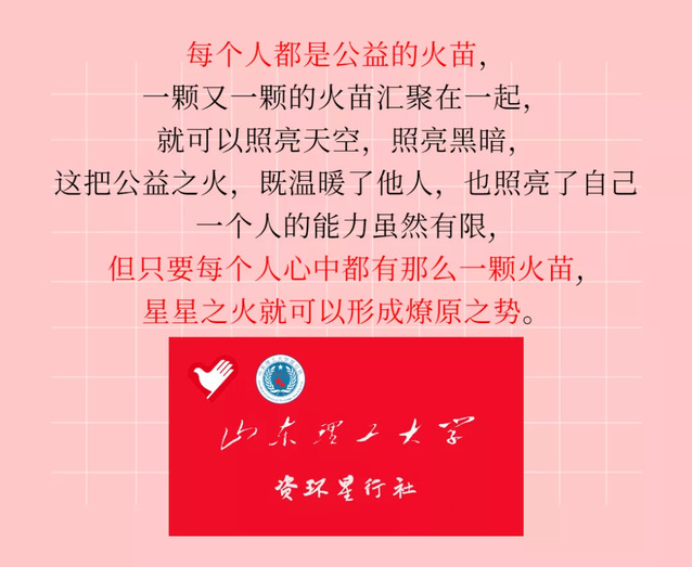 星星之火可以燎原,志愿服务需要行动,我们有信心有毅力去做好公益服务的点点滴滴。在这场新冠肺炎战役中,资环星行人没有停止脚步,在未来,我们也将砥砺前行,将爱的火苗撒满祖国大地!