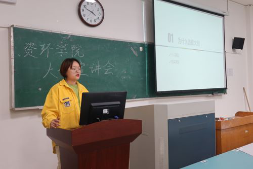 会议伊始,张安琪首先对“大创”的创业类型和学情总结进行简单介绍,并分别对大一、大二、大三关于“大创”的认知情况进行讲解。她提到,大学四年是一个循序渐进的过程。她结合自身经验,提醒学生在答辩时要对自己的项目充分了解,才能应对老师的提问,完成一场合格的答辩。马晓蔚上台发言,她首先根据自身的经历从个人和现实两方面阐述其参加“大创”的原因,并对其研究经历、研究思路进行进一步介绍。同时,她对参加“大创”的收获与感受进行补充分享,她说,项目的成功源于每个团队成员的辛勤付出,在比赛期间她与队员经历了许多有趣的事情,这是宝贵的人生经历。宣讲会在一片掌声中圆满结束。