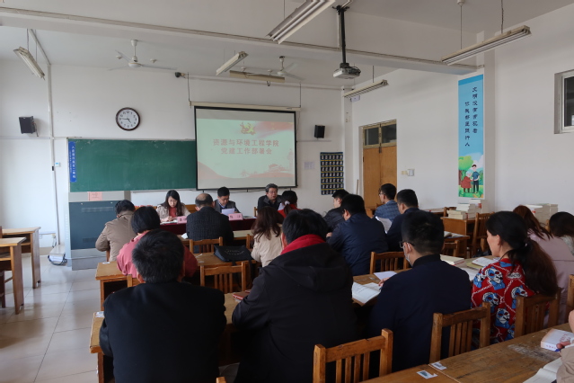 4月8日下午,资环学院在12号教学楼410教室召开党建工作部署会。学院党委委员、党务秘书、党支部书记、支部委员参加,会议由党委书记陈沙主持。