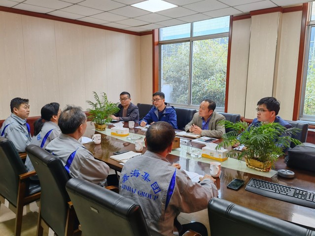 山东鑫海矿业技术装备股份有限公司董事长张云龙、副总经理韩卿旺热情接待了陶东平一行,在公司会议室,鑫海矿业研究设计院负责人介绍了公司在矿物加工工程方面的项目和技术情况,他们表示微细粒矿物的浮选技术是企业目前遇到的技术难题,表达了想要寻求技术支持的愿望。陶东平表示愿意就微细粒矿物的浮选与鑫海矿业开展技术合作,同时表示双方应加强交流,充分发挥双方各自技术优势,以校企融合等形式,开展产-学-研深度合作。