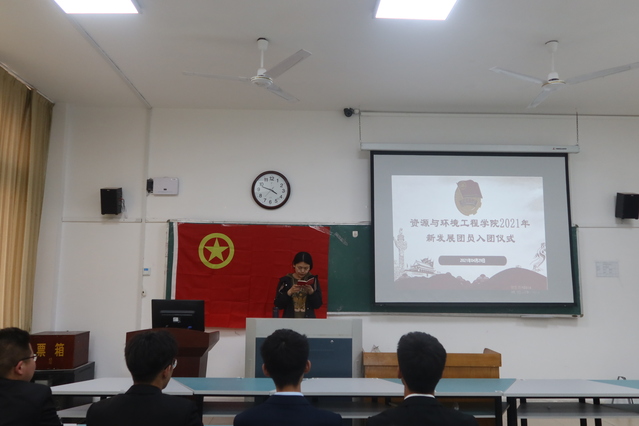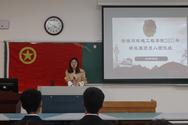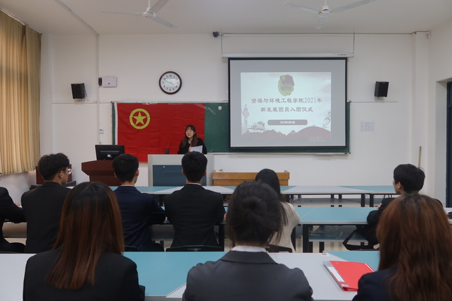 4月29日下午,资环学院在12号教学楼408教室举行2021年新发展团员入团仪式,团总支老师苗涛、张媛,团员学生代表与全体新发展团员参加仪式。仪式由张媛主持。