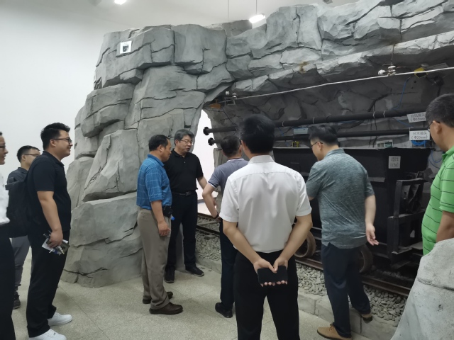 座谈会后,在副院长陈飞、矿物加工工程教研室主任周贺鹏的陪同下,考察团一行依次参观了岩土工程勘察室、地质陈列室、矿井通风与安全虚拟仿真实验室等各专业学科的实验场所。