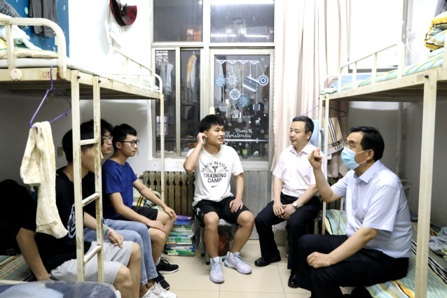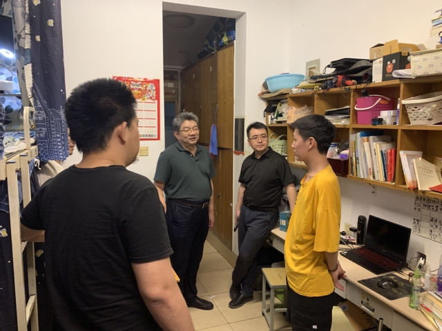 院领导老师走访毕业生宿舍。6月24日晚,学院党委书记陈沙,执行院长李明,党委副书记秦伟伟,院长助理刘晓、孙荣涛,全体辅导员走访宿舍,送别学院2021届毕业生。在学生宿舍,学院领导、老师与同学们亲切交流,对毕业生寄予深切地祝福和期望,希望全体毕业生铭记学校、学院的教育和培养,文明离校、感恩离校,以崭新的姿态开启人生新的篇章!