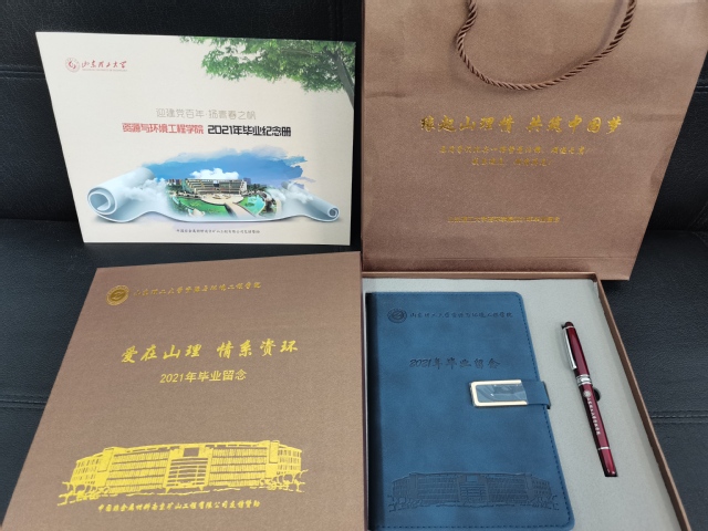 赠与专属定制暖心毕业礼物。爱在山理,情系资环。资环学院为所有2021届毕业生准备了一份专属礼物。将跃入人海,愿前路灿漫,因纸短情长,赠一本一笔。用本收藏时光,用笔书写青春,资环学院愿以这种方式陪伴见证每位毕业生的光辉时刻,缘起山理情,共筑中国梦!