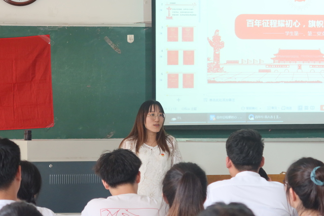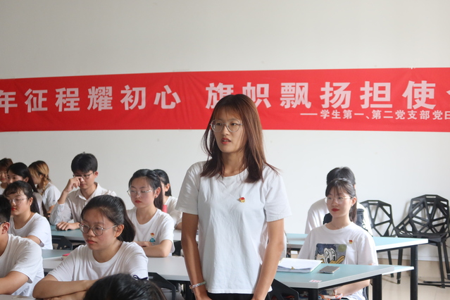 学生第一党支部书记张媛带领学生党员学习了习近平总书记在庆祝中国共产党成立100周年大会上重要讲话精神,她希望青年党员不忘初心,砥砺奋斗,为实现全面建成社会主义现代化强国,实现中华民族伟大复兴的中国梦贡献全部青春力量!