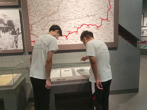 参观完纪念馆之后,实践团成员在党旗下郑重宣誓:时刻牢记党的宗旨和使命,不负人民不负党不负国家。中国共产党一路走来就是因为有众多的青年人前赴后继,勇于奉献,不怕牺牲,在中国共产党百年华诞之际身为新时代青年人,更应该传承革命先辈们的优良品格,秉持“为天地立心,为生民立命,为往圣继绝学,为万世开太平”的四为精神,不断努力,砥砺前行,为中华民族的伟大复兴贡献自己的力量。