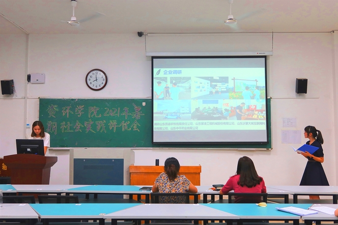 各实践团负责人立足建党百年和“十四五”规划开局之年,紧抓热点问题,以PPT、视频展示等形式进行汇报答辩。八支实践队涵盖社区支教、农村养老、矿山实习、乡村振兴及红色教育等多个主题,实践内容各具特色。筑梦沂乡实践队的队员们针对乡村发展,跨越三个区县进行考察调研,助理乡村振兴;下岗职工再就业实践团通过结合当下社会老龄化加重的现实问题对养老情况进行调研;圆梦矿业实践团走进矿山,结合专业知识,深入一线了解实际生产;满天星支教团的成员们结合自身所学知识,为孩子们开展充满特色的课堂教学。最后,评委老师对各实践团的报告提出改进意见,公示了评优结果。