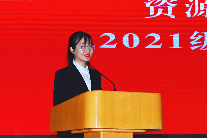 矿物1801班孙瑞毅代表在校生发言,她结合三年来自身在学院的成长经历,表达了在资环学院学习的幸福感受,并以学姐的身份勉励学弟学妹们:要求真学问,练真本领;奉献自己,成长成才;融入集体,结伴同行。