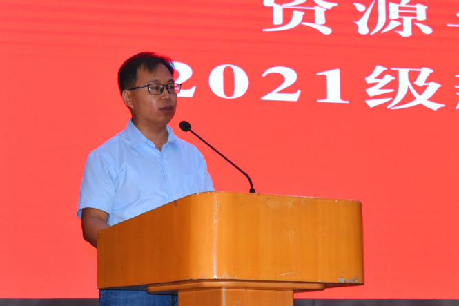2021级班级导师、采矿工程系教师张晓君代表全院教师发言,表示会潜心教学,践行“学生中心、产出导向和持续改进”的工程教育理念,聚焦“五有”人才的培养目标,做好引路人、知心人,与同学们一同书写大学的精彩篇章。