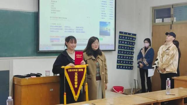 主持人宣读宿舍的得分及排名,获奖宿舍代表依次上台领奖,并与颁奖老师合影留念。(刘召统、李新娟、赵玉昊)