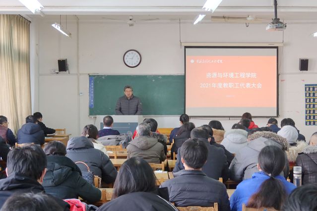执行院长李明代表学院行政向大会作2021年度工作报告,从师资队伍建设、本科人才培养、学科建设、科研和服务社会、学生工作、党建和思政工作、争取社会资源等七个方面,回顾了学院过去一年取得的成绩,并指出存在的差距。他指出,2021年是“十四五”开局之年,资环学院班子认真落实校党委行政决策部署,紧紧围绕年度目标任务,团结带领全院师生员工,抢抓机遇、攻坚克难,统筹推进疫情防控和改革发展工作,学院事业发展势头良好,各项重点工作方面均取得新进展。即将到来的2022年,是党的二十大召开之年,是全面实施“十四五”规划的关键一年,是学校“作风建设年”,全院师生员工要共同努力,紧盯目标、狠抓落实,切实通过作风大转变,带动学院工作大提升、事业大发展。