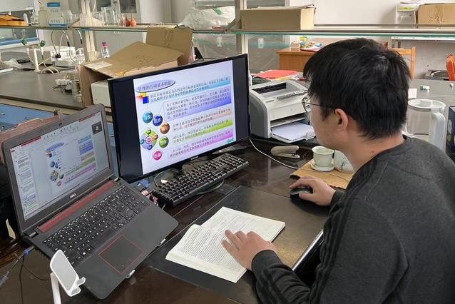 学院教学工作办公室的老师提前半小时来到办公室,为确保教学工作正常有序地开展做好充足准备。教学工作办公室主任于文刚介绍,“为保障线上教学安全平稳有序,学院高度重视,搭建平台、提供资源,及时解决解答师生遇到的问题。为了应对因网络或平台系统崩溃引起的特殊情况,学院还提前准备应急预案,每位老师可以通过平台或者建班级QQ群、微信群上传课程教学PPT、练习题等,引导学生自主学习,并在课后通过网络进行经验分享和交流,以进一步完善线上教学工作。”