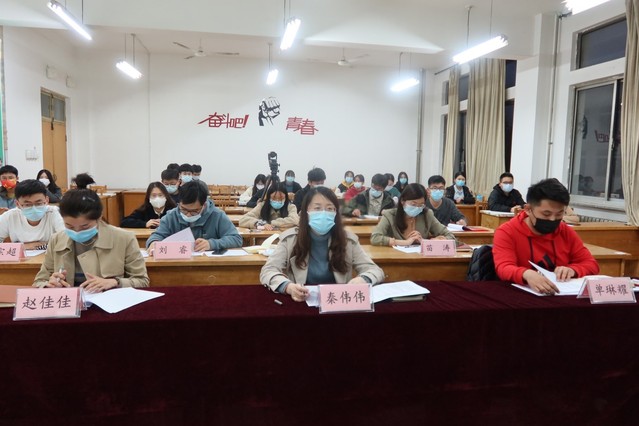 4月15日晚,学院在12号教学楼410教室举行2022届学生会换届竞选。学院党委副书记秦伟伟,团委书记赵佳佳,辅导员苗涛、单琳耀、高聪聪、张媛、赵宗超、刘睿,2021届学生会主要学生干部和各班级学生代表担任评委。会议由学生会工作指导老师单琳耀主持。