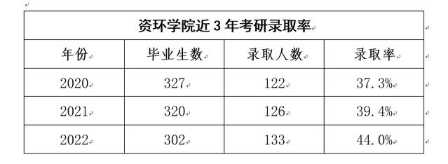 学院2个专业考研录取率均在50%以上,其中资循环专业考研率达56.4%。成绩的取得是学院全体师生共同努力的结果。学院始终本着助力学生成长成才的目标,为学生考研创造环境,做好各方面服务工作,多措并举助力学子考研。