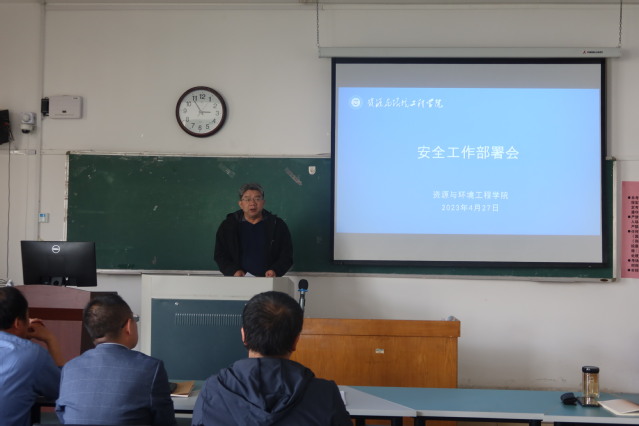 4月27日下午,资环学院在12号教学楼408教室召开安全工作部署会,会议由党委书记李新红主持。学院领导班子成员,全体教职工参加。
