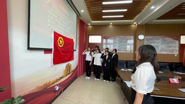 5月18日下午,学院在12号教学楼446室举行2023年新发展团员入团仪式。学院团委书记赵佳佳,辅导员单琳耀、高聪聪,团员代表和6名新发展团员参加仪式。仪式由辅导员张媛主持。