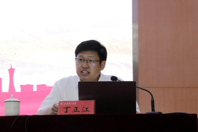 丁正江以“不忘初心 牢记嘱托 奋力书写‘英雄地质队’新篇章”为题,和大家共同学习了习近平总书记给山东省地矿局第六地质大队全体地质工作者的重要回信;介绍了大队65年来攻坚克难、回报祖国的发展历程,讲述了一代代地质人在地质勘探过程中涌现出来的感人事迹;从对党忠诚、甘于奉献的爱国情怀,坚守初心、矢志报国的使命担当,崇尚科学、求真务实的工作态度,攻坚克难、锐意开拓的创新精神,艰苦奋斗、顽强拼搏的优良作风,自信自强、勇毅前进的英雄气概等六个方面对大队品质作了阐释。