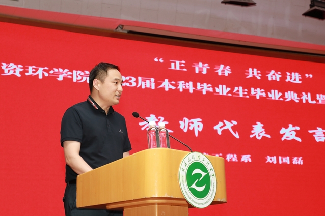 刘国磊代表学院教师发言,他勉励同学们勇于探索,敢于挑战,甘于奉献,在今后的学习和工作中实现人生价值,传承母校基因。勘查1902班王广奥代表本科毕业生发言,他回顾了大学四年学校和老师心系学子、用心用情的暖心经历,表示会谨记师长教诲,在各自岗位上实现人生抱负。
