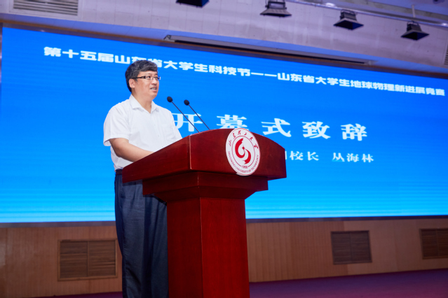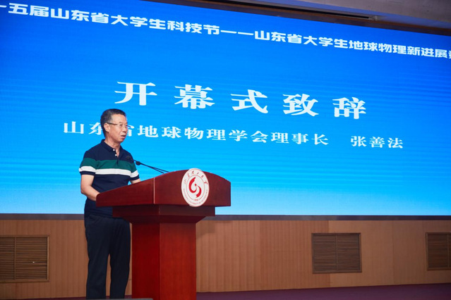 主办单位之一山东省科学技术协会学会服务中心学术创新服务部长张玲、承办单位山东省地球物理学会理事长张善法分别为赛事致辞。协办单位山东省物化探勘查院、山东省地质矿产勘查开发局第三地质大队(山东省第三地质矿产勘查院·山东省海洋地质勘查院)、北京桔灯地球物理勘探股份有限公司、湖南继善高科技有限公司、合肥国为电子有限公司、山东牧也仪器设备有限公司、山东省地球物理学会青年工作委员会代表以及省内地球物理专业领域专家、学者和全体参赛师生参加开幕式。