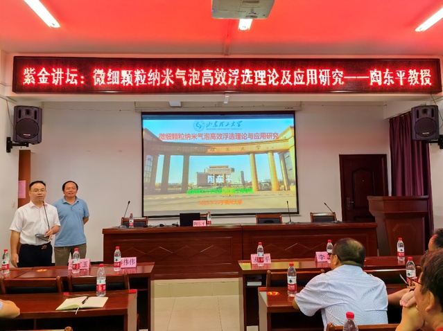 会后,院长陶东平教授做客紫金讲坛,为紫金地质与矿业学院师生作了一场题为“微细颗粒纳米气泡高效浮选理论与应用研究”的学术报告。