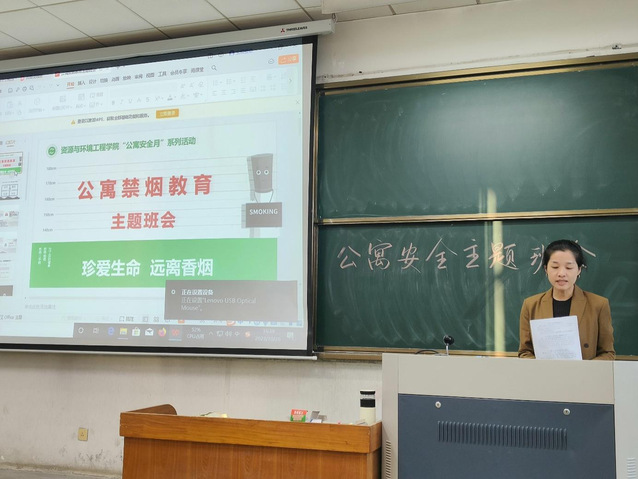 10月23日至27日,资环学院联合安全保卫处分阶段开展公寓安全教育主题班会和公寓禁烟教育活动。
