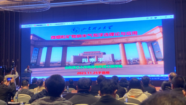 陶东平教授分享了题为“精细矿物颗粒纳米气泡浮选的理论与应用”的学术报告,矿加系教师艾哈迈德·索比介绍了题为“萤石矿石纳米气泡浮选”的开创性研究学术报告,为与会同行专家带来了前沿见解,并得到了高度认可。