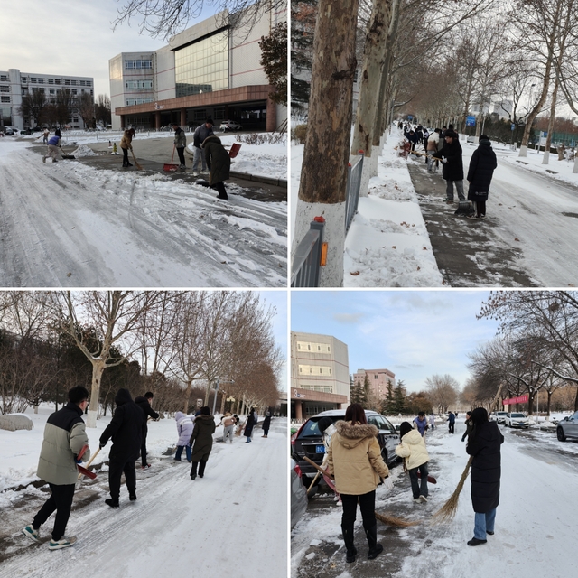 资环学院开展冰雪清扫工作 发布者:资环学院 发布时间:2024-02-24 浏览次数:180 新学期开学在即,为确保师生们的出行安全,2月22日下午,资环学院党委组织开展冰雪清扫工作,学院班子成员和部分师生参加。工作中,大家不畏严寒,干劲十足,分工明确,团结协作,挥起铁锹、推着雪铲,经过一个多小时的奋战,环3号教学楼道路上的积雪积冰情况得到较大程度改善,为师生出行提供方便。(单琳耀)