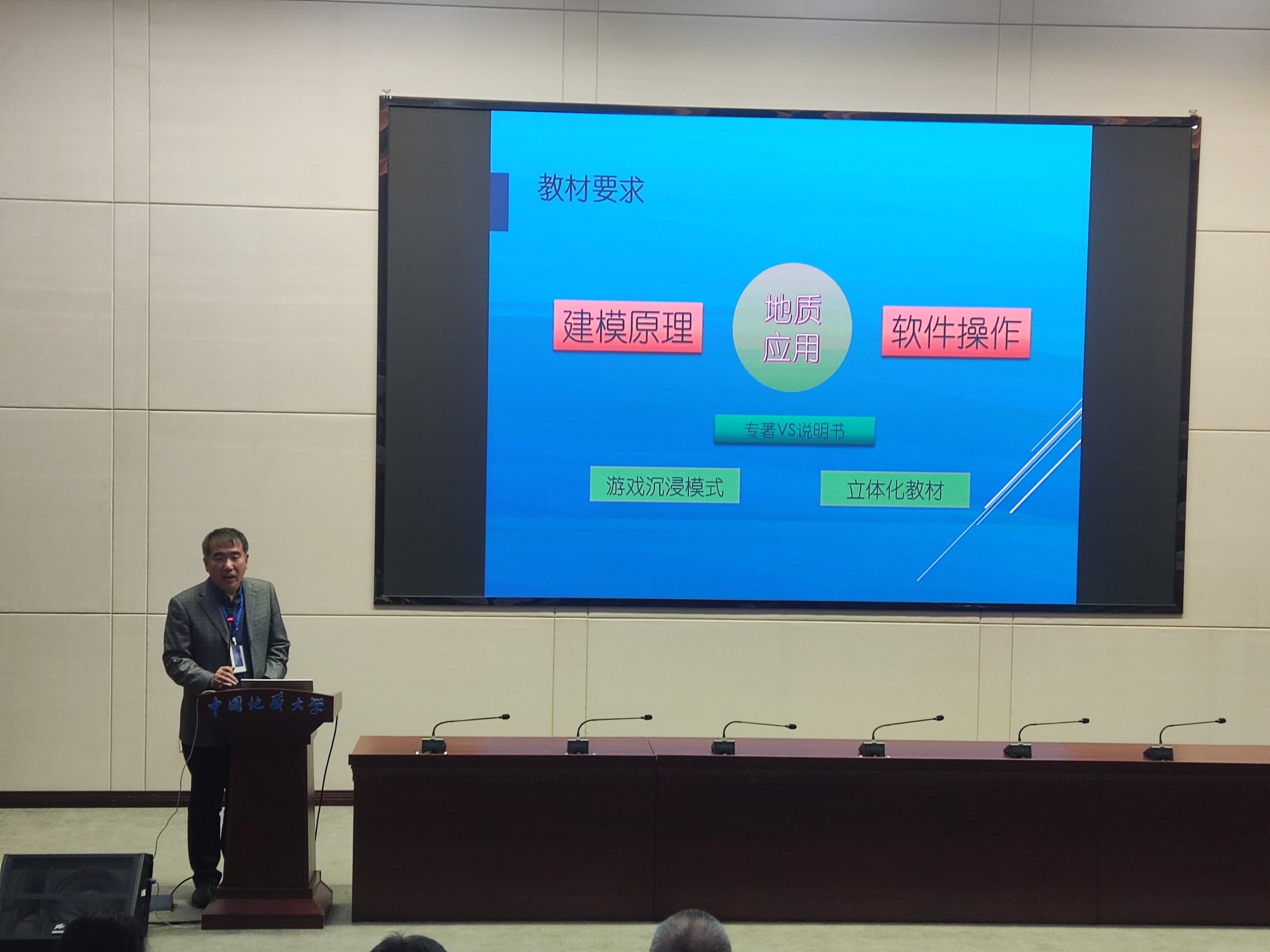 教育部高等学校地质类专业教学指导委员会主任唐辉明教授代表教指委致辞,中国地质大学(武汉)副校长李建威教授代表学校对与会专家们表示欢迎。与会代表围绕资源环境大数据工程新工科专业的人才培养、课程体系和教材建设进行了深入研讨,分享了最新的研究成果和实践经验。资环学院副院长刘晓就“三维地质建模与应用课程教材建设”进行了主题汇报。