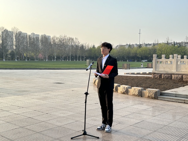 6时30分,升国旗仪式开始。在国旗护卫队的护送下,升旗手步入升旗台,伴随着庄严的国歌声,鲜艳的五星红旗冉冉升起。全体师生向国旗行注目礼。青年学生代表纪坪尚作国旗下发言,他倡导同学们要德智体美劳全面发展,努力成长为堪当民族复兴重任的时代新人。全体师生面向团旗,高举右拳,重温入团誓词。