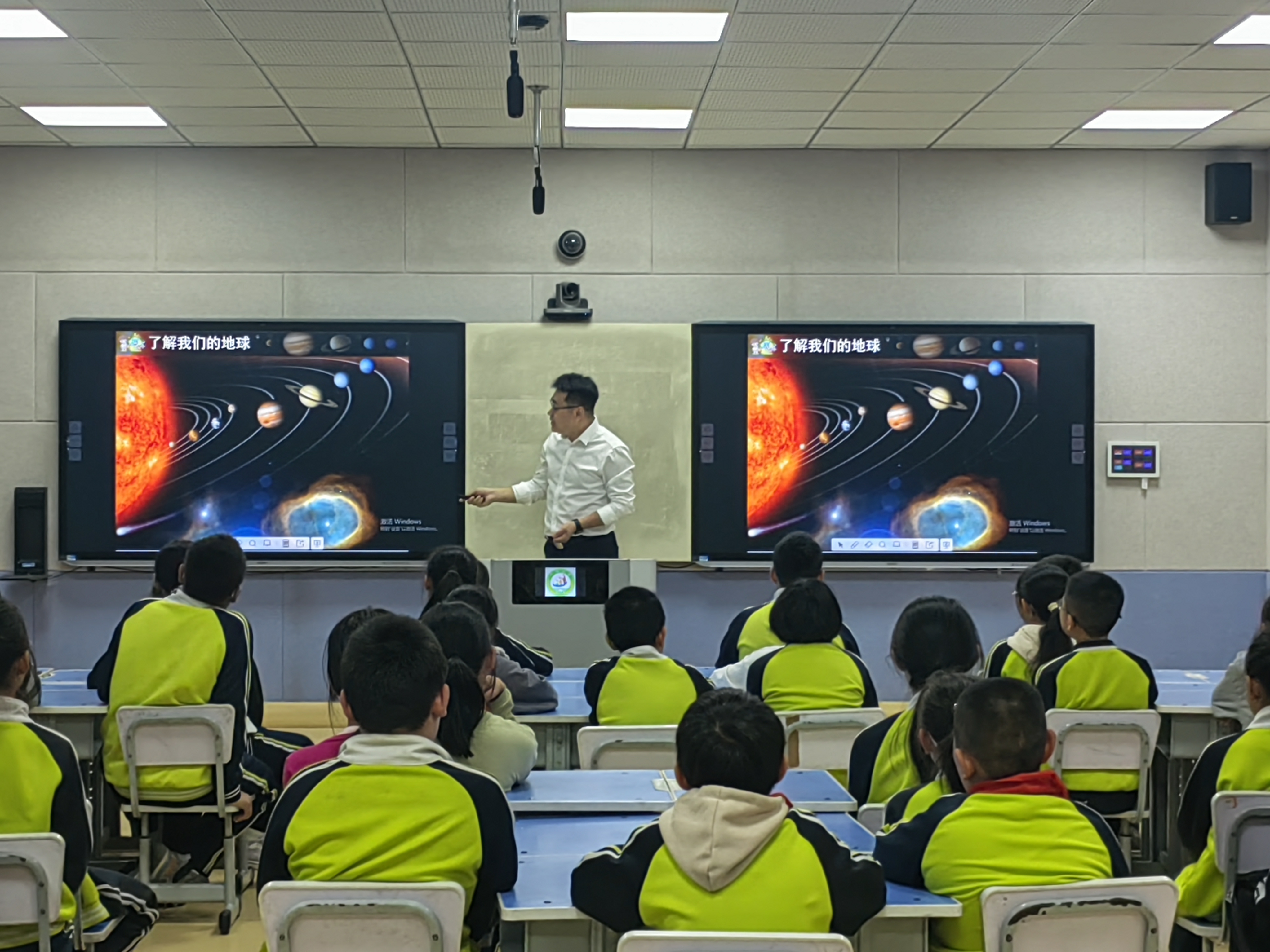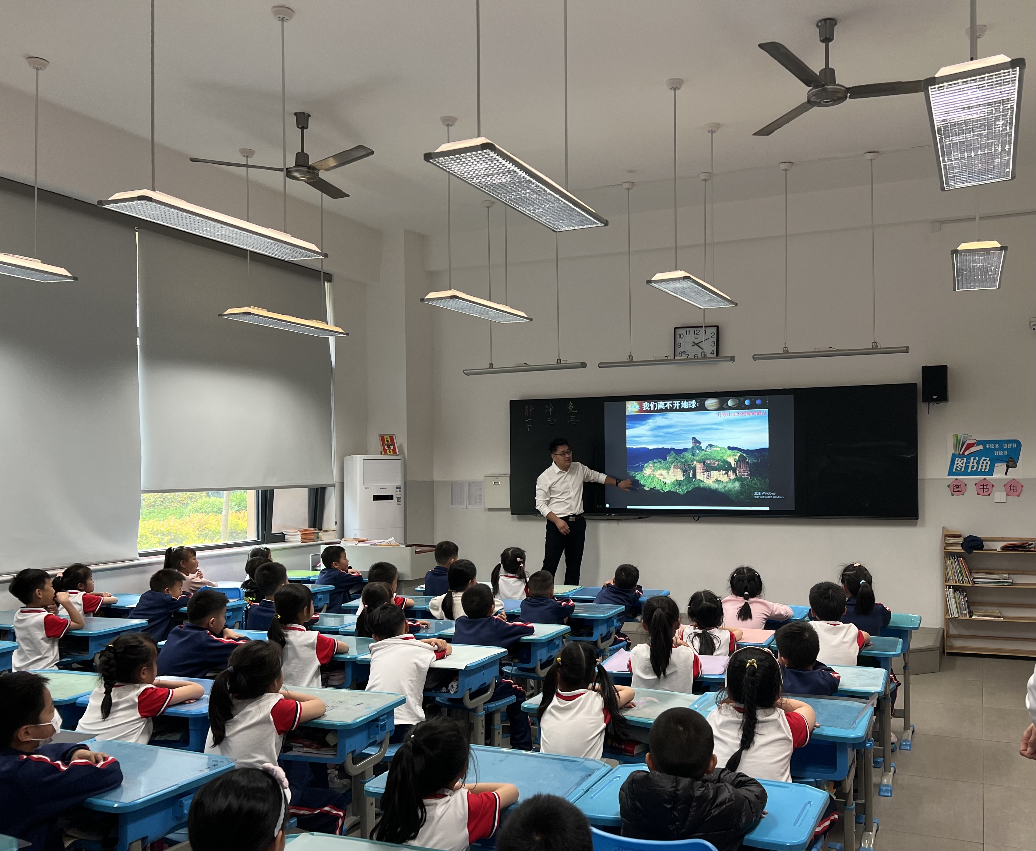 张超以“我们和地球”为主题,围绕“了解我们的地球”、“我们离不开地球”、“如何保护我们的地球”等三部分,用通俗易懂的语言和形象的图片,与现场小学生分享了地球的故事。宣讲现场,小学生们积极举手互动,并通过数据、图片对比学习等方式,对如何保护我们生活的地球有了更深入的了解和认识。