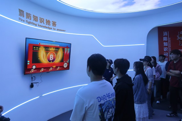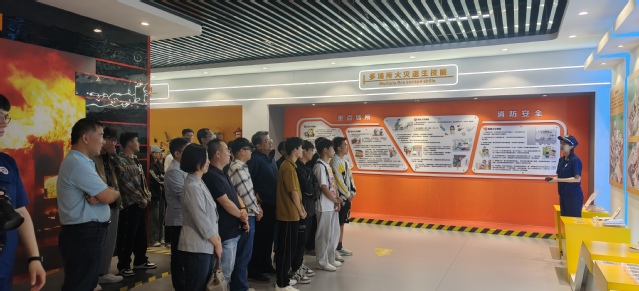 在消防科普教育基地,学院一行在讲解员的引导下,参观体验了消防知识科普区、消防知识实景体验区、VR智能家居隐患排查区、119报警体验区、消防知识抢答区等功能区域,观看了火灾案例警示片。讲解员通过实物展示、视频介绍、多媒体互动体验等科技手段,真实还原了生、工作和逃生通道等场景,重点就如何预防火灾、灭火器操作方法、自救逃生知识等进行细致讲解。
