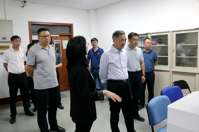 座谈会前,沈政昌一行参观了学校分析测试中心及矿物加工工程系实验室。