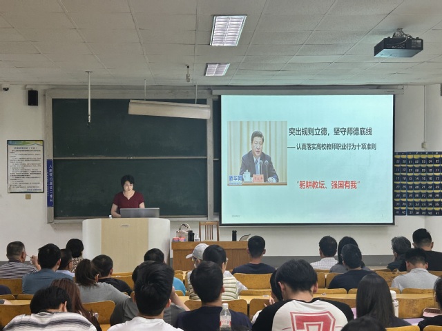马克思主义学院孙新红老师受邀作了题为“突出规则立德,坚守师德底线——认真落实高校教师职业行为十项准则”的专题辅导报告。孙新红从“师德师范 常记心间”“典型案例 警钟长鸣”“学高为师 身正为范”三个方面,结合真实案例进行了深入细致的讲解,引导全院教职工进一步规范从教行为,筑牢师德底线,积极践行“四个相统一”,当好学生“引路人”,争做新时代“四有”好老师。