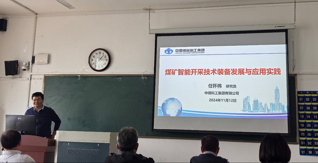 11月12日,学院邀请中国煤炭科工集团一级首席科学家任怀伟研究员,为学院师生作题为《煤矿智能开采技术装备发展与应用实践》的学术报告,学院班子成员、相关专业教师及研究生参加报告会。报告会由学院执行院长李明主持。