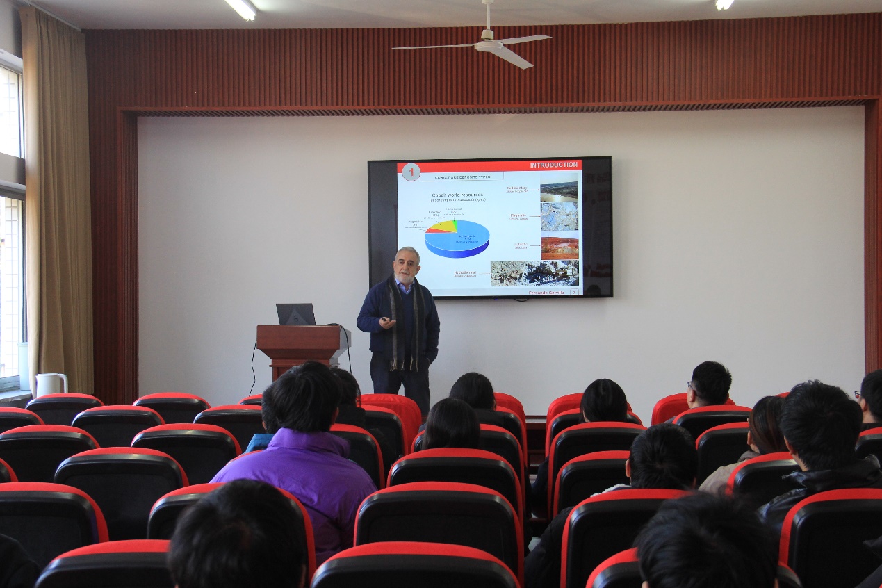 11月28日下午,Fernando教授为资源勘查工程系的教师和研究生们做了题为《Are Serpentinites the Source of Metals of Co-Ni Ores in the Bou Azzer Mining District in Morocco?》的报告。Fernando教授详细探讨了摩洛哥Bou Azzer矿区的成矿机制以及蛇纹石的地质特点与金属来源之间的关系,为与会者提供了一个关于金属矿床形成的新视角。