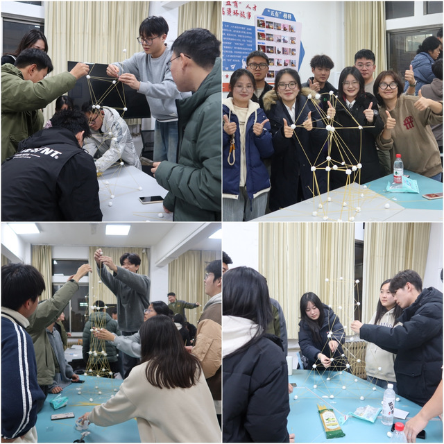 团辅活动环节,赵佳佳带领培训班成员分组开展了“棉花糖+意大利面建塔”活动。每组成员需利用棉花糖、干意大利面和胶带,合力搭建出高且稳的塔楼,放置塔顶棉花糖后需稳立五秒不倒。各小组策略各异,展现了多样创意,并围绕此次的搭建思路、方法及感悟做了分享。