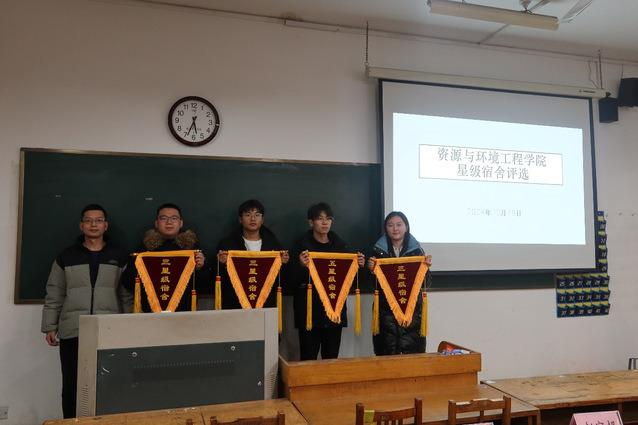 本次共评选出“五星级宿舍”1个,“三星级宿舍”3个,“一星级宿舍”7个。辅导员为获奖宿舍颁发流动红旗。