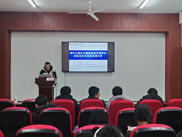 2023级研究生鲁鹏、王玉嘉、范宗宇和王雨忠分别以“B-Co3O4催化PAA降解盐酸四环素”“基于捕收剂混溶特性的氟碳铈矿强化浮选机制研究”“尾砂深度浓密技术及工程实践”和“煤矸石基多元固废新型充填胶凝材料研发及水化反应机理分析”为题进行了学术报告。同学们结合报告内容积极提问,与报告人进行了深入而热烈的探讨,现场学术交流氛围浓厚。